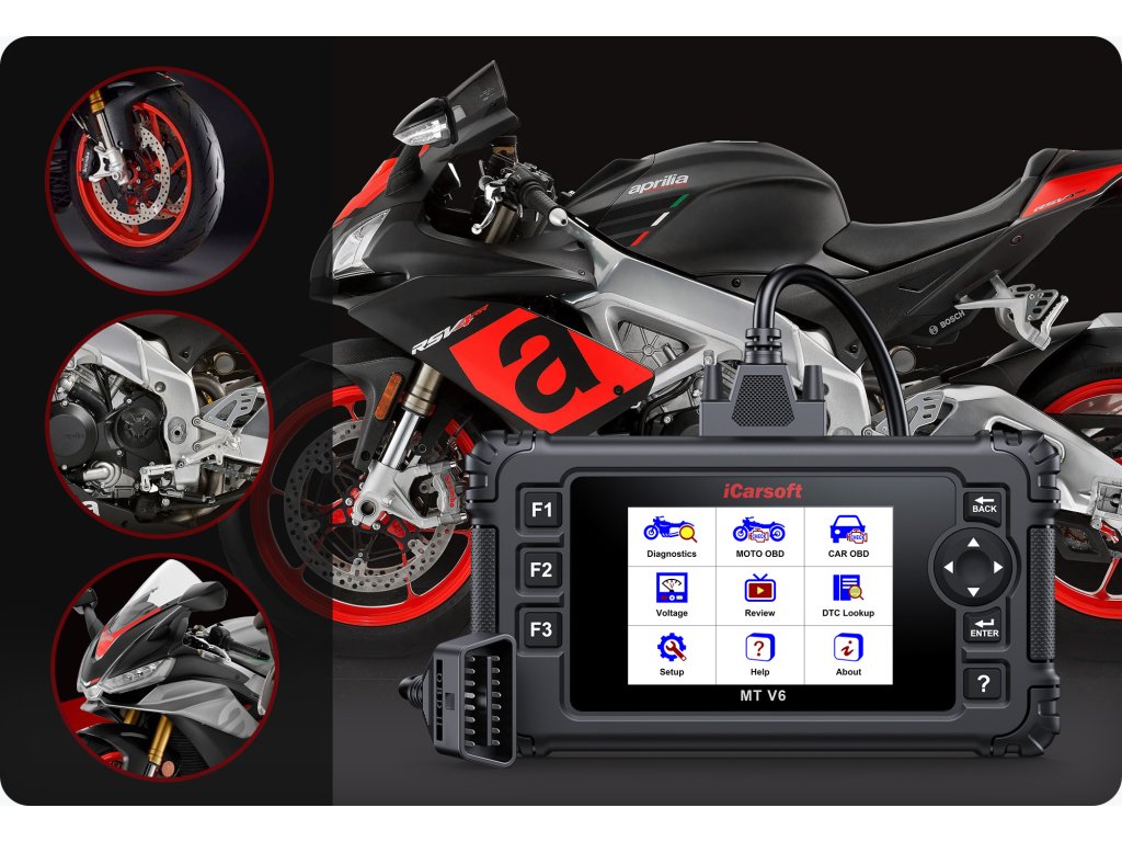 iCarsoft MT V6 pro Aprilia je moderní diagnostický nástroj navržený speciálně pro motocykly značky Aprilia. Umožňuje kompletní diagnostiku řídicích jednotek, čtení a mazání chybových kódů, zobrazení živých dat, testy akčních členů a vybrané servisní funkce. Díky kompaktnímu provedení a intuitivnímu ovládání je vhodný pro profesionální použití i pro náročné uživatele.