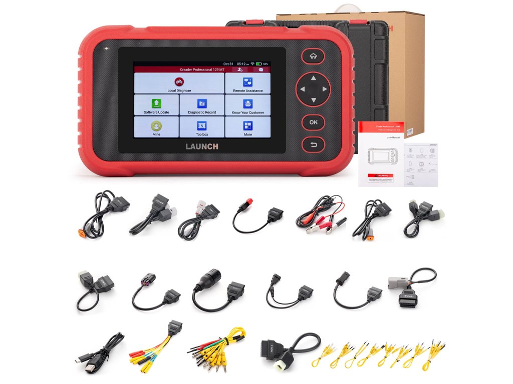 LAUNCH CRP129 MT (Creader Professional 129 MT) je přenosná diagnostika pro motocykly postavená na systému Android. Je navržená pro rychlé zjištění závad, kontrolu jednotek, práci s živými daty a podporu servisních funkcí. Díky sadě adaptérů a univerzálním propojovacím kabelům je kompatibilita výrazně širší než u běžných „OBD čteček“.