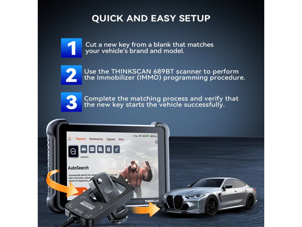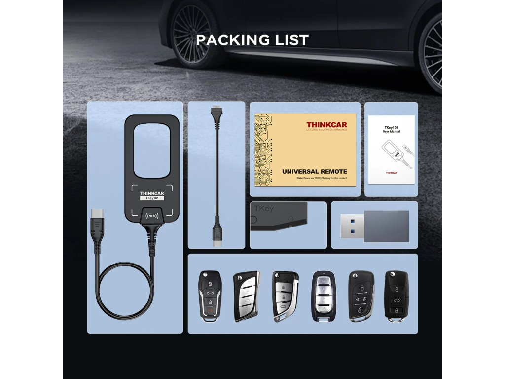 - TKEY101 je určen pro použití s kompatibilní diagnostikou / tabletem THINKCAR / MUCAR ( Thinkscan 689, Mucar 892BT, Mucar V08 )